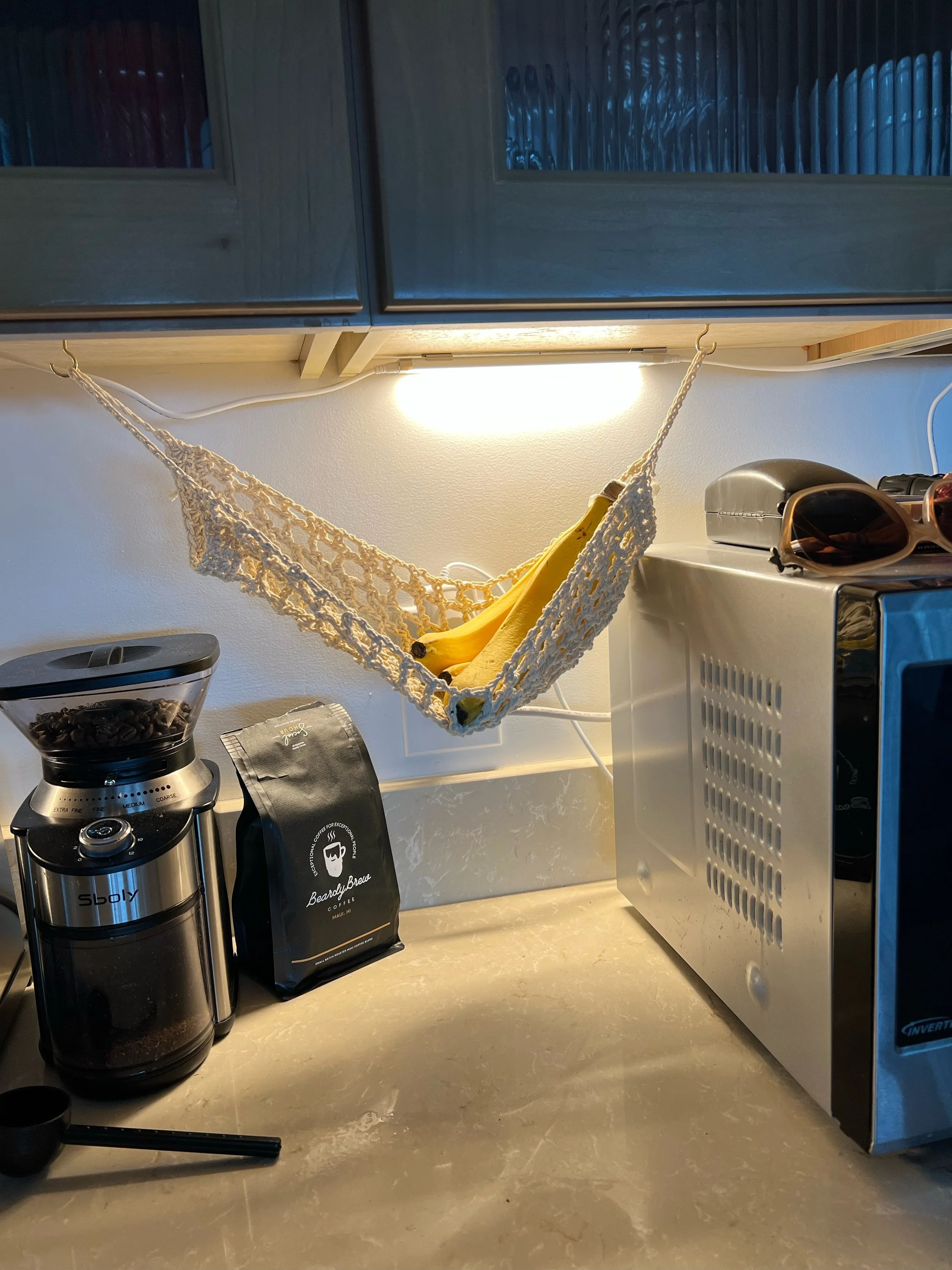 I bought a hammock for my fruit because everything deserves a hammock in Maui :) Also - spot the BeardyBrew! You can pick up a bag at BeardyBrew.com (shameless plug).