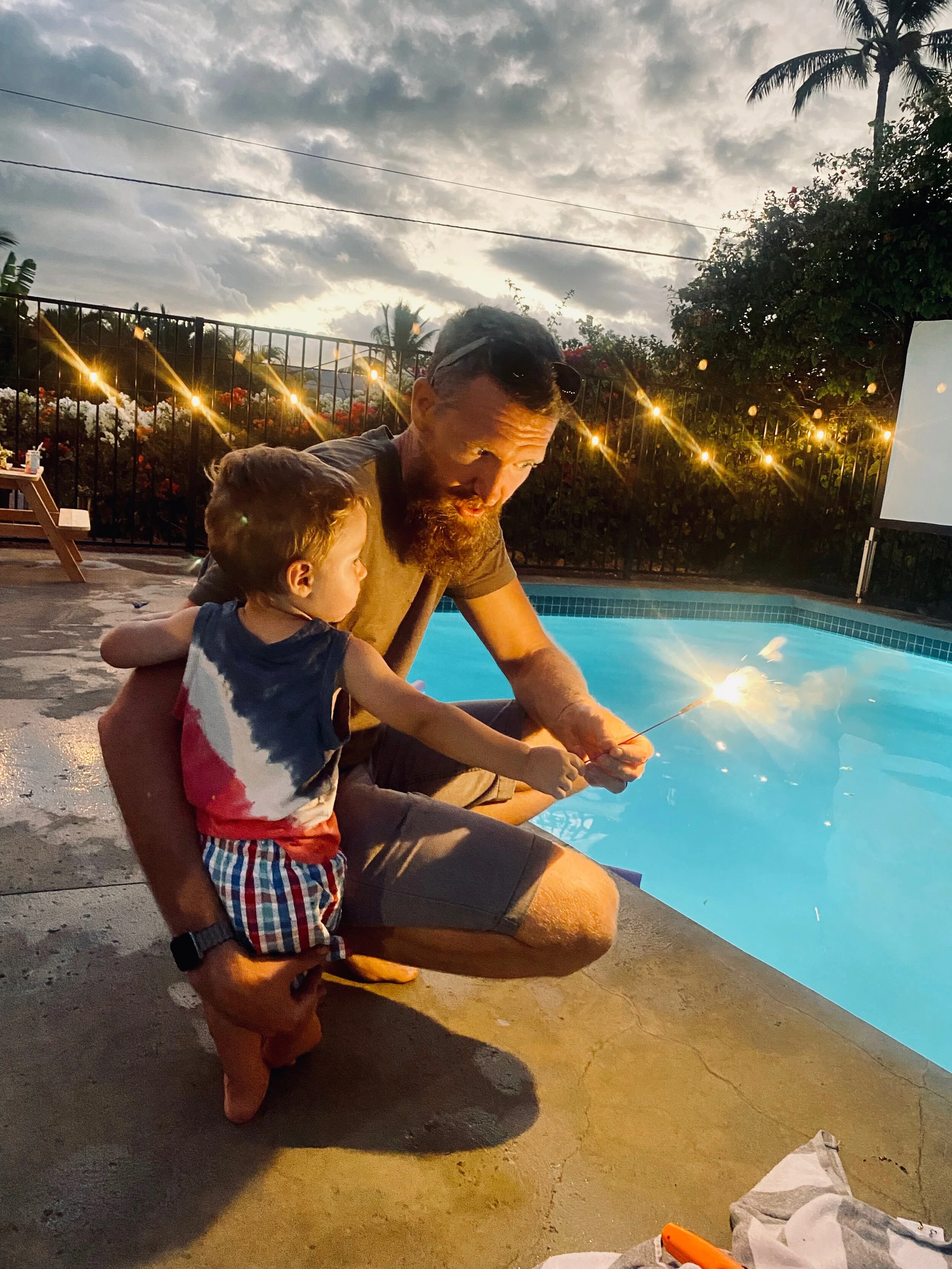 Me and my wild man enjoying some sparklers on the Fourth of July.